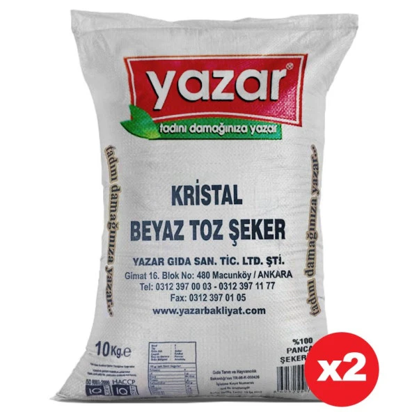 Yazar Kristal Toz Şeker 10 Kg x 2 Paket