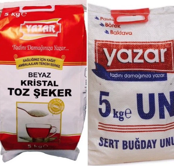 Yazar Kristal Toz Şeker (Kraft Ambalaj) 5 Kg + Pastalık Böreklik Un 5 Kg