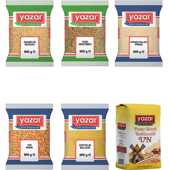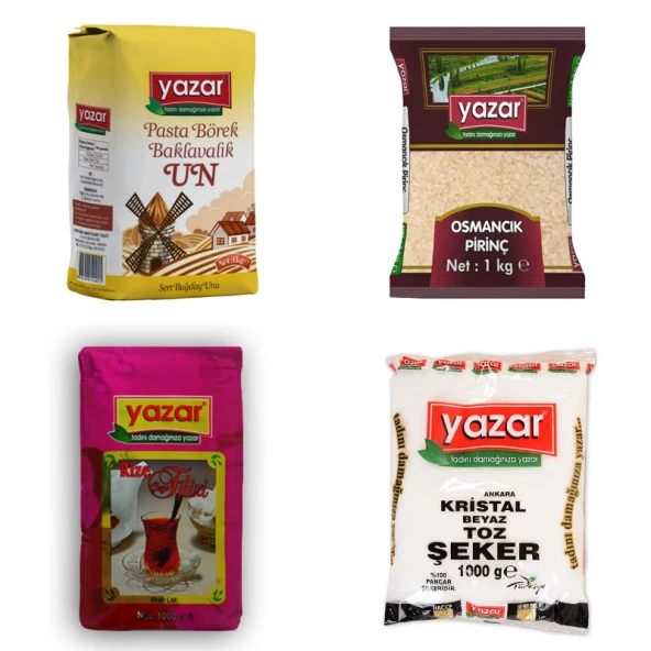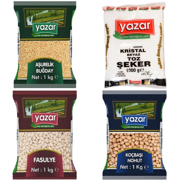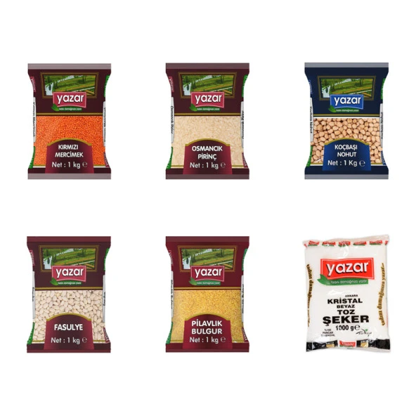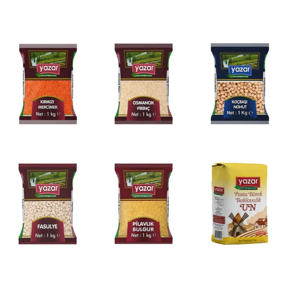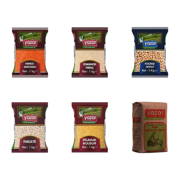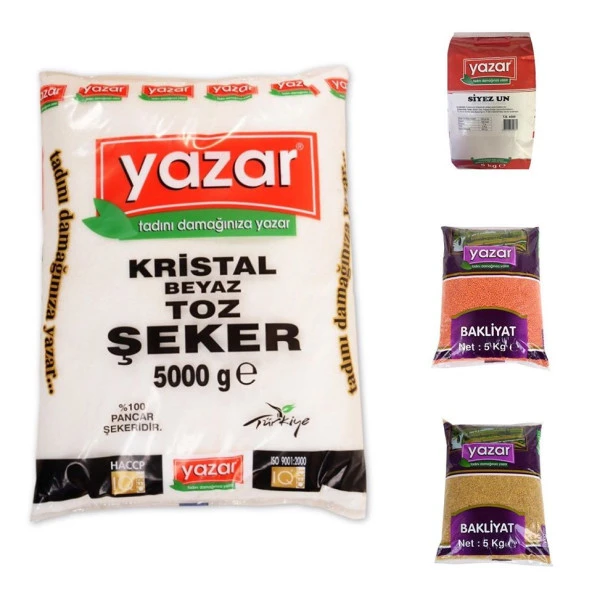 Yazar Kuru Gıda Seti 5KG Siyez Unu+5KG Pilavlık Bulg+5KG Kırmızı Merci+5KG Toz Şeker=20kg