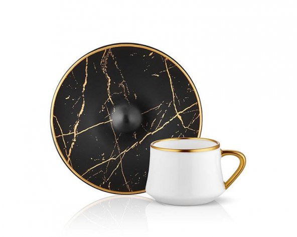 Koleksiyon Sufi Türk Kahve Seti 6lı Mermer Siyah Parlak Altın