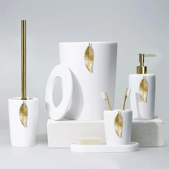 SELİM DEKOR LEAF BEYAZ-ALTIN BANYO SETİ