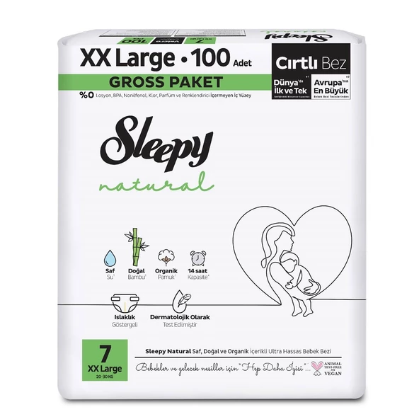 Sleepy Natural Bebek Bezi Gross Paket 7 Beden 20-30 Kg 100 Adet
