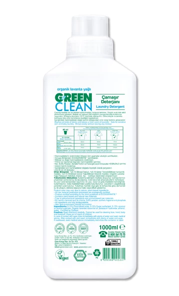 Green Clean Bitkisel Çamaşır Deterjanı 1000 ml (20 Yıkama)