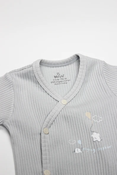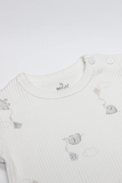 Bistyle Flying Elephant Yarım Kol 2'Li Body 17116 Ekru Gri