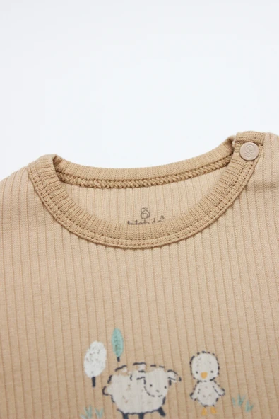 Bistyle Organik Natural Basic Style Yarım Kol Body BS17103 Bej