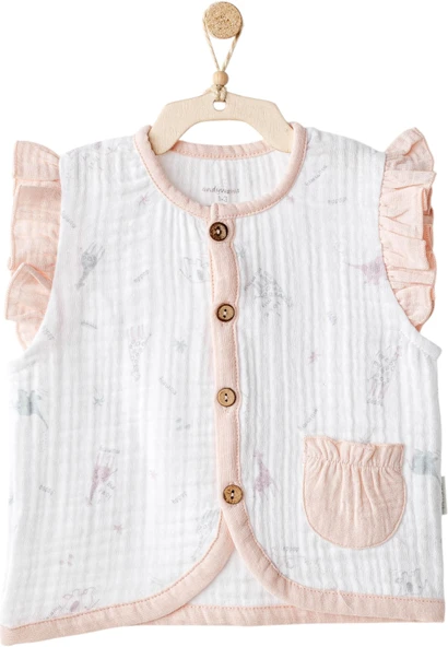 Bistyle Grow İn Love Çift Taraflı Bebe Yelek 18102 Pembe Ekru