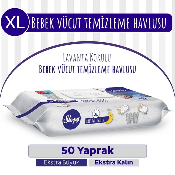 Sleepy XL Lavanta Kokulu Bebek Vücut Temizleme Mendili 50 Yaprak