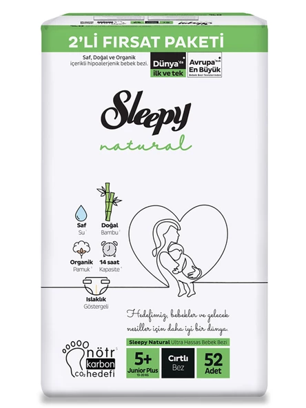 Sleepy Natural Bebek Bezi 2'Li Fırsat Paketi 5+ Beden 52 Adet