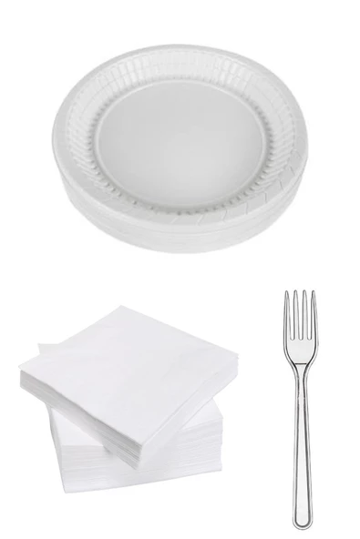 Plastik Tabak-Lüx Çatal-Peçete Set