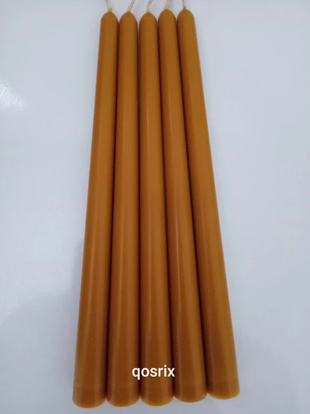 qosrix 5'li Hardal Sarısı Şamdan Mumu 1. Kalite Soya Doğal Vanilya Kokulu Uzun Çubuk Konik Mum Dekoratif