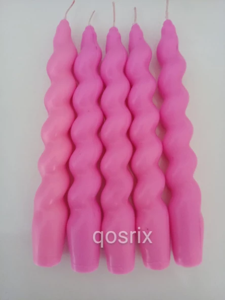 qosrix 5'li Açık Pembe Renk Italyan Burgulu Şamdan Soya Mumu Doğal Kokulu Uzun Çubuk Konik Burgu Spiral Mum