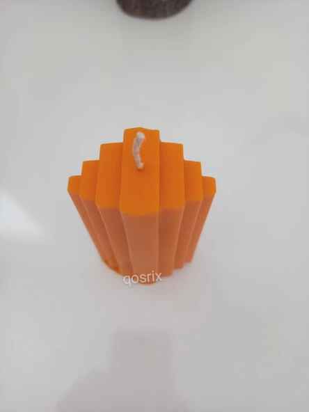 qosrix Turuncu Renk Soya Doğal Vanilya Kokulu Sütun Geometrik Şekil Kule Mum Dekoratif 1 Adet