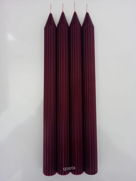 qosrix 4'lü Bordo Şamdan Soya Mumu 1. Kalite Soya Doğal Vanilya Kokulu Uzun Çubuk Konik Mum Dekoratif