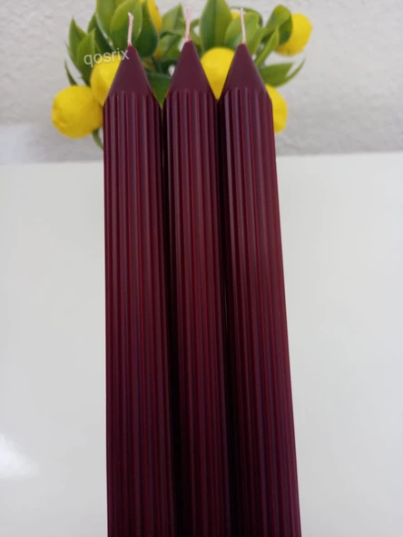 qosrix 3'lü Bordo Şamdan Soya Mumu 1. Kalite Doğal Vanilya Kokulu Uzun Çubuk Konik Mum Dekoratif
