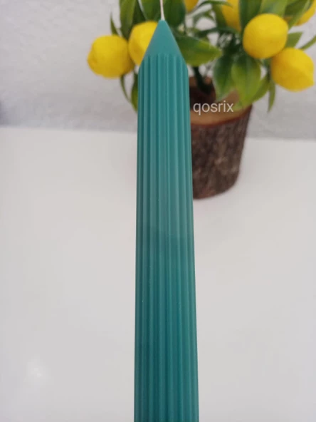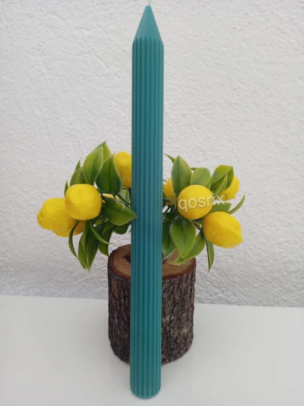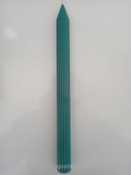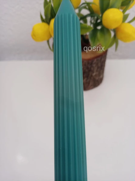 qosrix Açık Petrol Yeşili Şamdan Soya Mumu 1. Kalite Doğal Vanilya Kokulu Uzun Çubuk Konik Mum 1 Adet