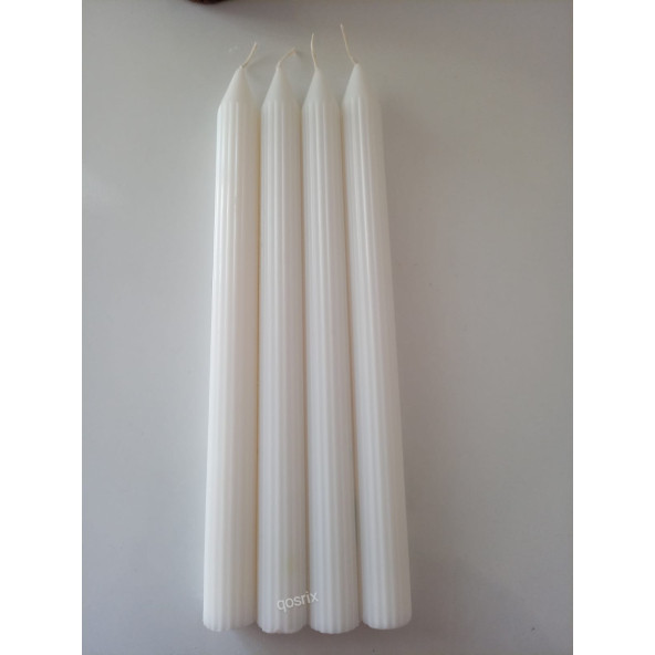 qosrix 4'lü Beyaz Şamdan Mumu 1. Kalite Doğal Kokulu Uzun Çubuk Konik Mum