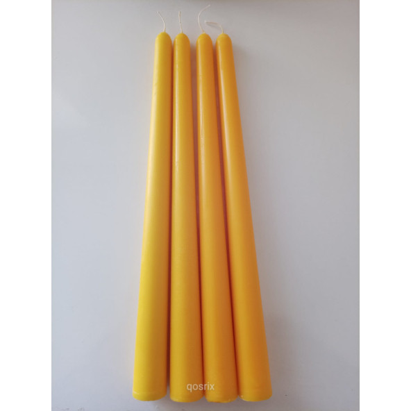 qosrix 4'lü Sarı Şamdan Mumu 1. Kalite Doğal Kokulu Uzun Çubuk Konik Mum