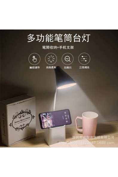Yussraw Çok Fonksiyonlu Kalemlik Led Göz Koruması Masa Lambası Usb Lityum Pil Şarj Edilebilir Dokunmatik