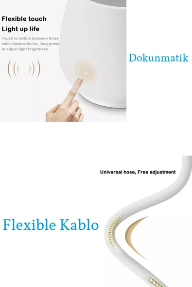 Yussraw Şarjlı Dokunmatik 20 Led Çalışma Okuma Işığı Flexible Masa Lambası Beyaz