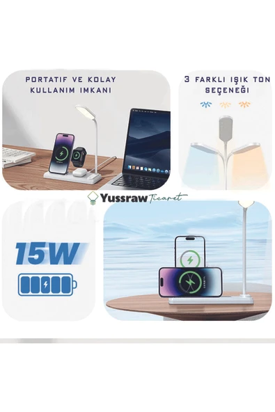Yussraw kablosuz şarj Yeni çok fonksiyonlu4'ü 1 arada 15W hızlı şarj kablosuz şarj katlanabilir masa lambası