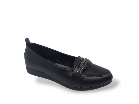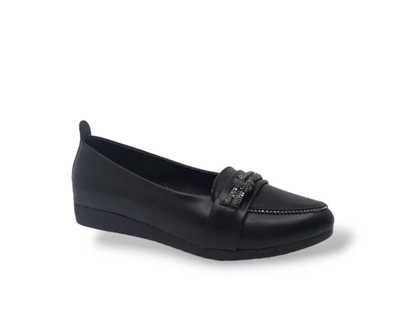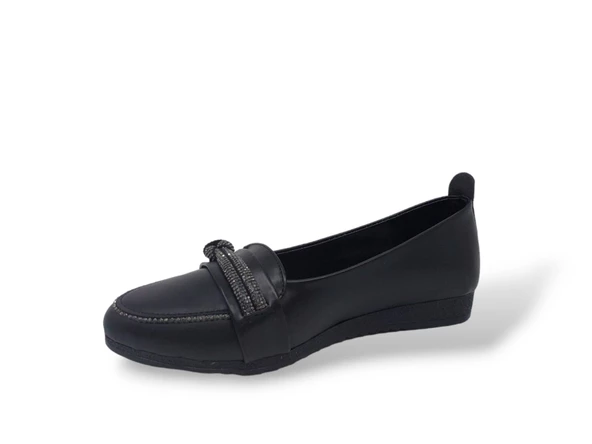 Zerhan 3042 Kadın Siyah Taşlı Bantlı Babet Ayakkabı
