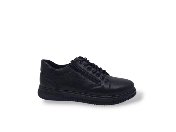 Zerhan 4546 Erkek Siyah Bağcıklı Fermuarlı Hakiki Deri Kauçuk Taban Ayakkabı
