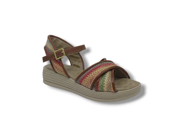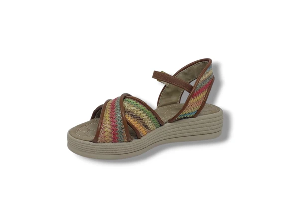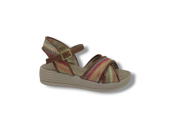 Zerhan 2011 Kadın Taba Hasır Tokalı Dolgu Taban Sandalet Ayakkabı