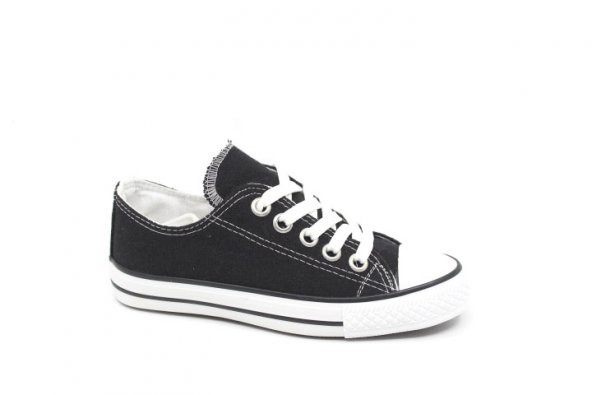Çocuk Siyah Bağcıklı Bilekli Keten Ayakkabı