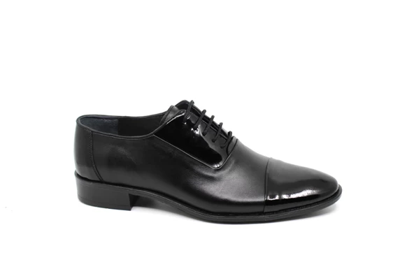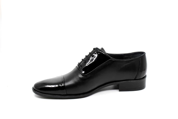 Erkek Siyah Bağcıklı Rugan Deri Hazır Taban Ayakkabı 3504