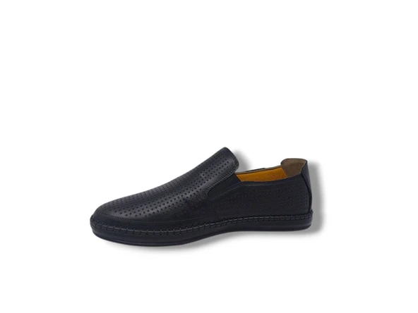Zerhan 1002 Siyah Delikli Hakiki Deri Loafer Ayakkabı