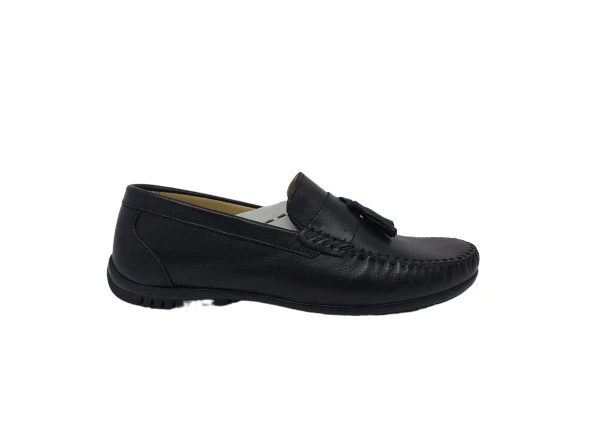 Zerhan 230-100 Erkek Siyah Hakiki Deri Loafer Ayakkabı