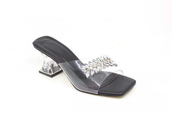 Zerhan C1001 Kadın Siyah Renk Şeffaf Bantlı Taşlı Şeffaf Kadeh Topuk Terlik