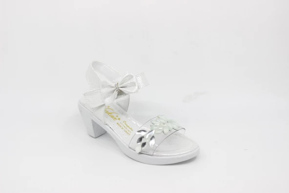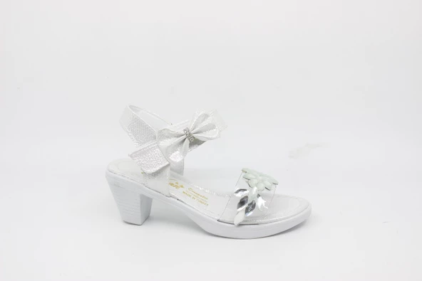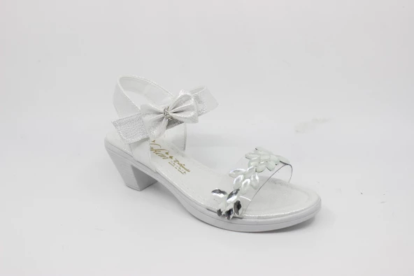 Zerhan 1550 Kız Çocuk Platin Taşlı Bantlı Topuklu Ayakkabı