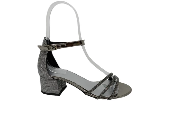 Zerhan Kız Çocuk Gri Simli Bantlı Topuklu Ayakkabı