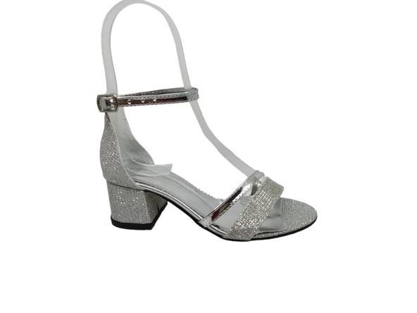 Zerhan 450 Kız Çocuk Gümüş Pırıltılı Taşlı Tek Bant Topuklu Abiye Ayakkabı