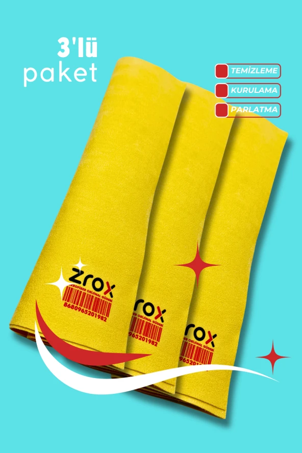 ZROX Mikrofiber Orijinal Güderi Bez 50x70 cm 3'lü Paket