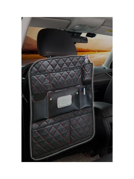 TC30-330007 KOLTUK ARKASI ORGANiZER KAPiTONE DERi SiYAH KIRMIZI iP
