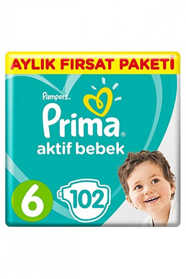 Prima Marka: Bebek Bezi Aktif Bebek 6 Beden 102 Adet Ekstra Large Aylık Fırsat Paketi Kategori: Beb