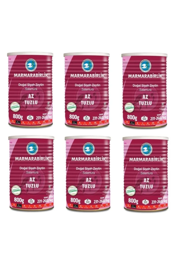 MARMARABİRLİK Marmarabirlik Az Tuzlu L 800 Gr Teneke Siyah Salamura Zeytin X 6 Ad