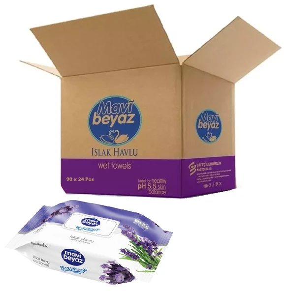 Mavi Beyaz Islak Havlu Mendil 90 Yaprak Lavanta 24 Lü Set 90 Yaprak Plastik Kapaklı (2160 Yaprak)