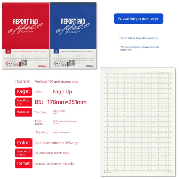 Mavi Deri Izgara El Yazısı Kağıdı - 2 Dikey 400 Izgara (Rastgele Renk)