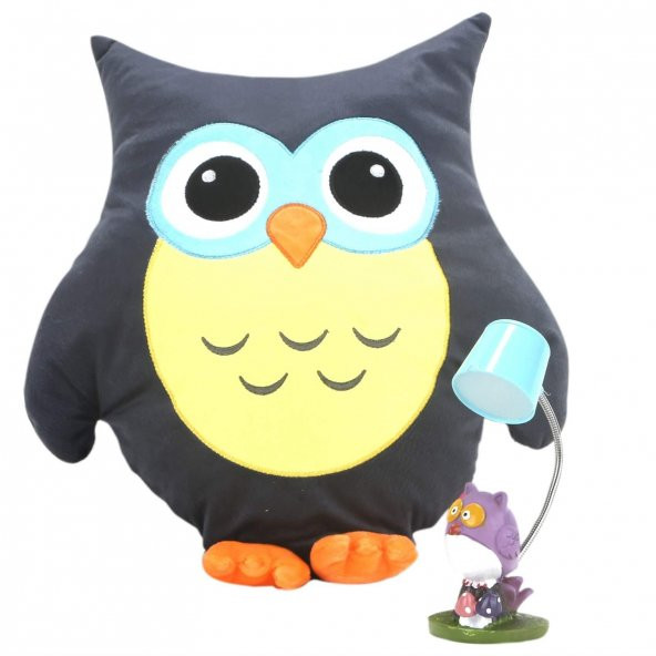 Meraklı Baykuş Yastık Mor Baykuş Masa Lambası Hediye Seti