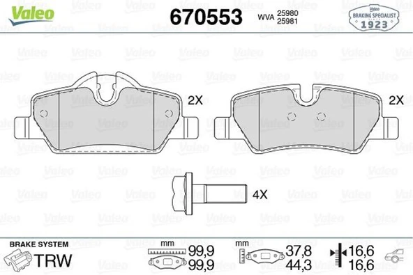 Mini Cooper Fren Balatası Arka Mini F55 F56 F57 - Valeo 670553
