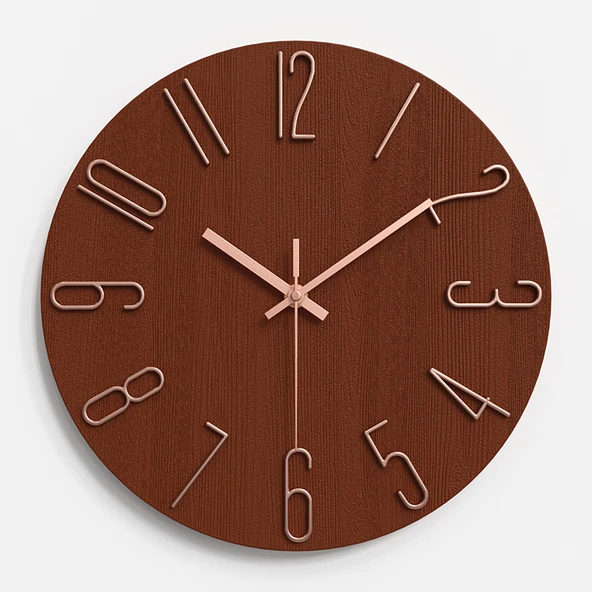 Minimalist Modern Duvar Saati - 25 cm - Kahve Gül Altın