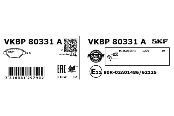 Mitsubıshı Ticarı On Fren Balatası Mitsubıshı L200 2.5 D 4×4 2006-2012 Pajero 2008-> L200 2.4 2015-> Fiat Fullback 15- - Skf Vkbp 80331 A