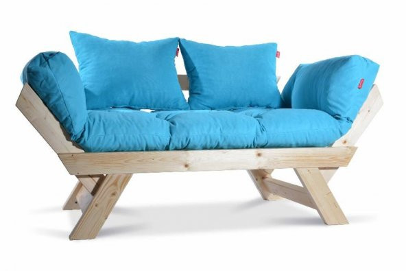 Mobildeco Kombin Wood Ahşap İki Kişilik Kanepe (Doğal/Mavi)