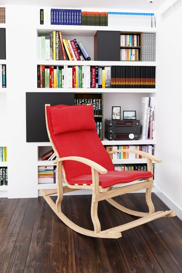 Mobildeco Padişah Ahşap Sallanan Sandalye Kırmızı - Doğal