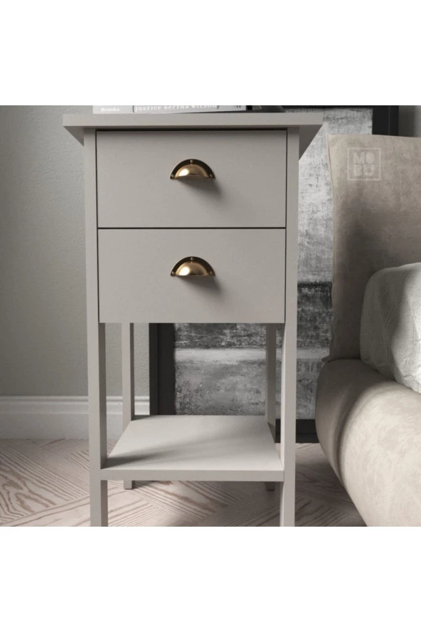 Mobu Concept Retro Çift Çekmeceli Gri Komodin Mr1405