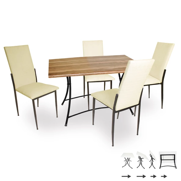 Modern Katlanır Werzalit-Gözde Mutfak Masa Takımı - Indiana Wood Krem