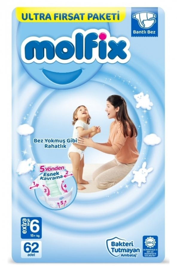 Molfix 6 Numara Extra Large 62'li Bebek Bezi